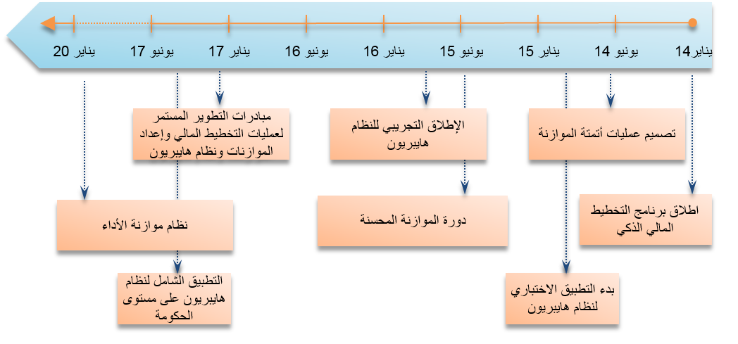 سيتم تنفيذ المشروع على مراحل وسيتم الانتهاء بحلول عام 2020. والأنشطة الرئيسية المخطط لها في السنوات المتعاقبة هي: